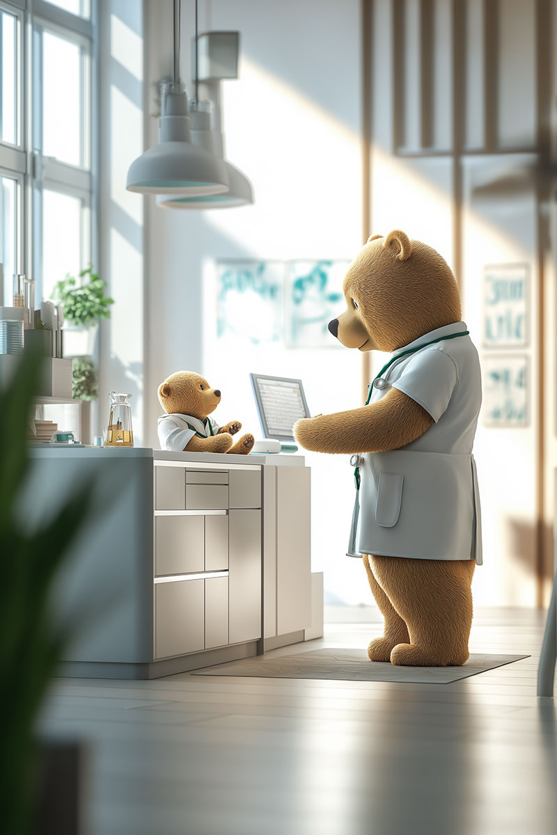 Vítejte v ordinaci dětských lékařů Dr. Bear Clinic, v místě, kde zdraví dětí je na 1. místě
